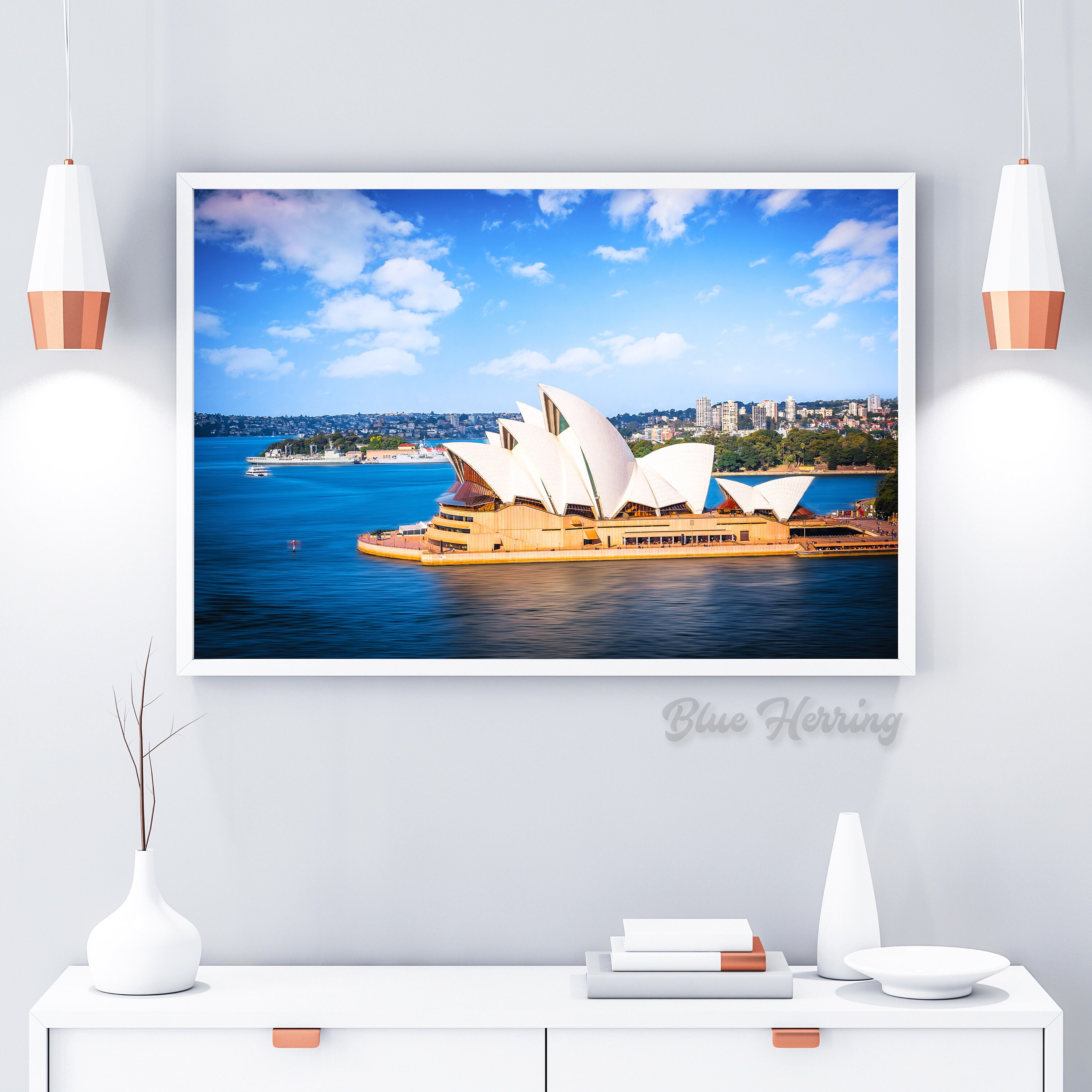 Sydney Opera House skyline photography shows the Sydney city skyline as Aerial View across Sydney Harbour, Australia. It is a photo that is ideal for Zoom Background, a Travel Decor Poster, Wall Art Gift, a Wedding Birthday Gift or a House Warming Gift, perhaps a blank wall solution and much more.