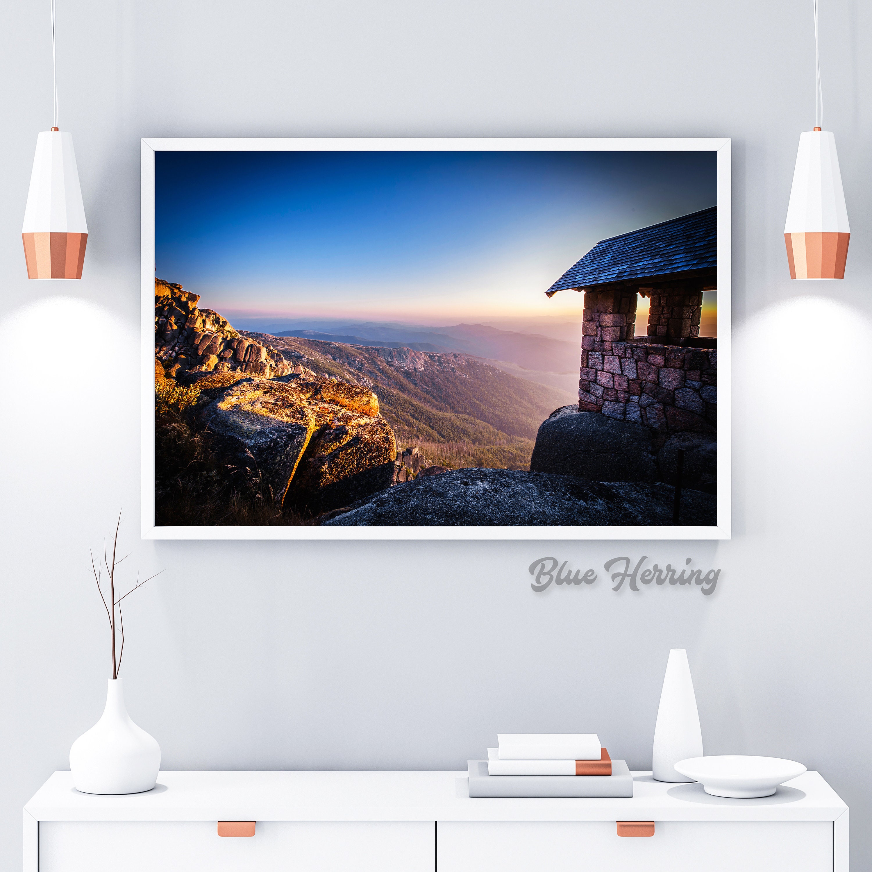 Panoramic photograph of Mount Buffalo, The Horn in the Victorian Alps. This Australia travel poster will suit your needs for Extra Large wall art, Chrismas Gift, Travel or Wedding Gift for a couple or a House Warming Gift, Mountain Print, Landscape Photo, Landscape Photo or an extra Large Print for your home!