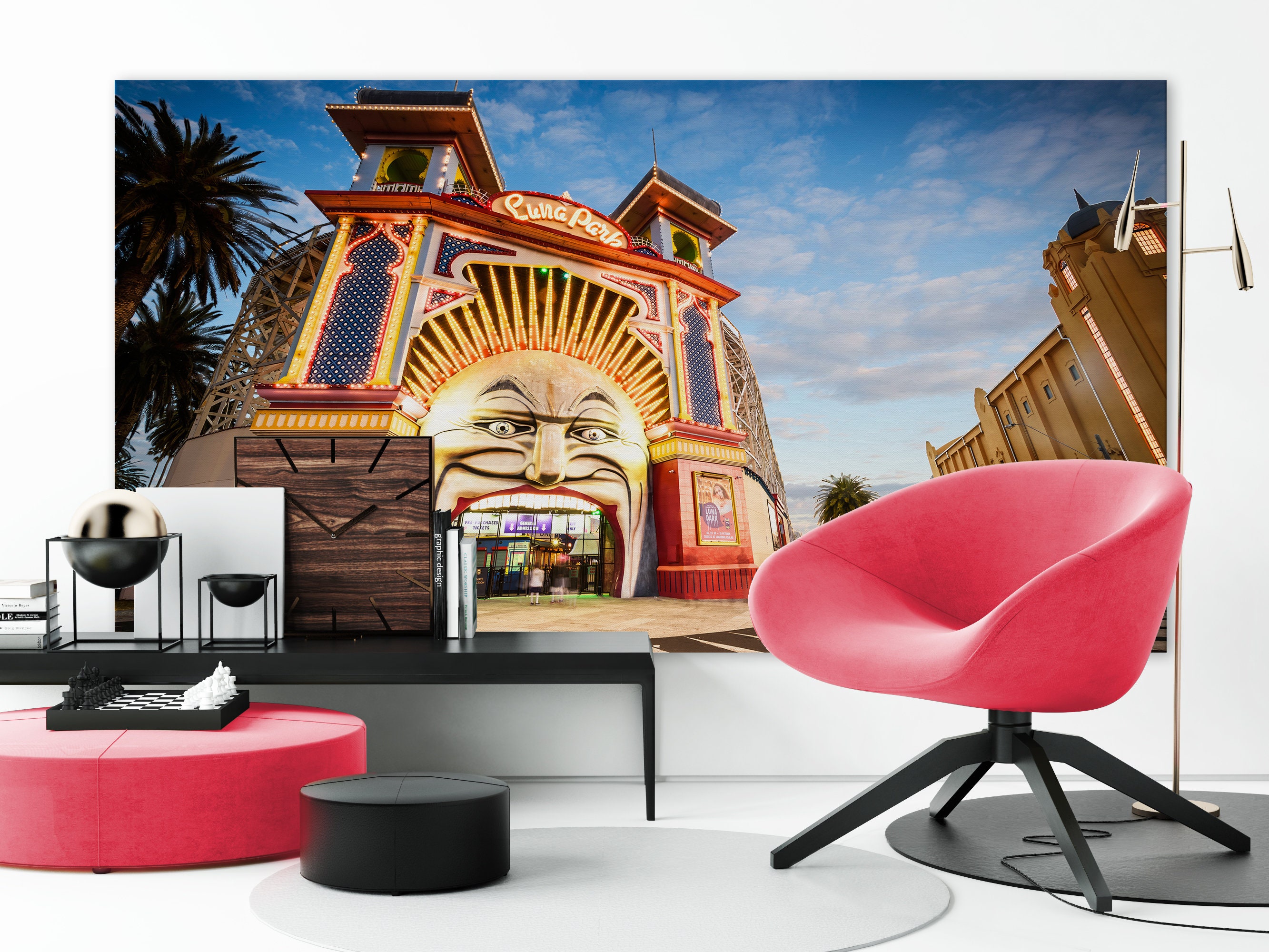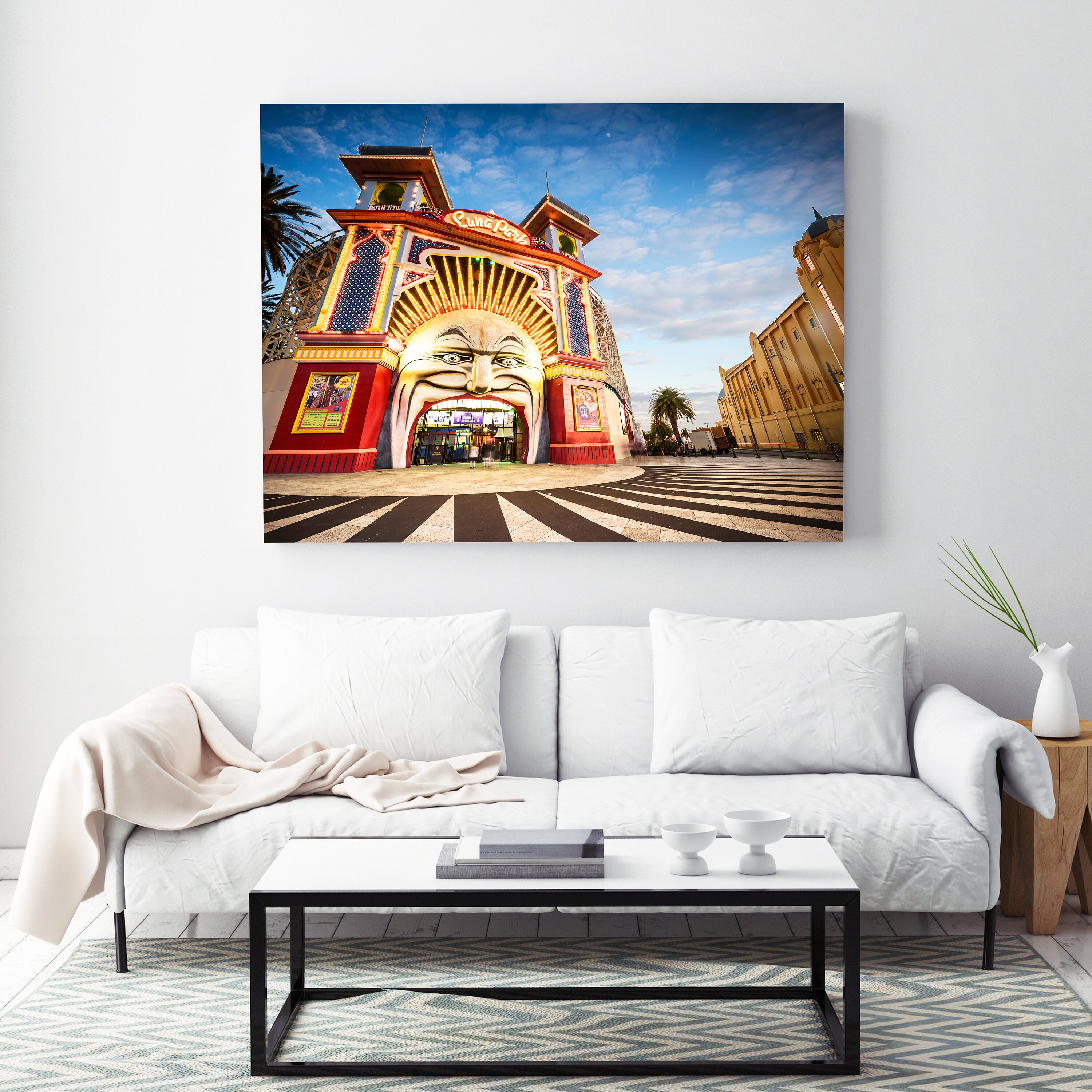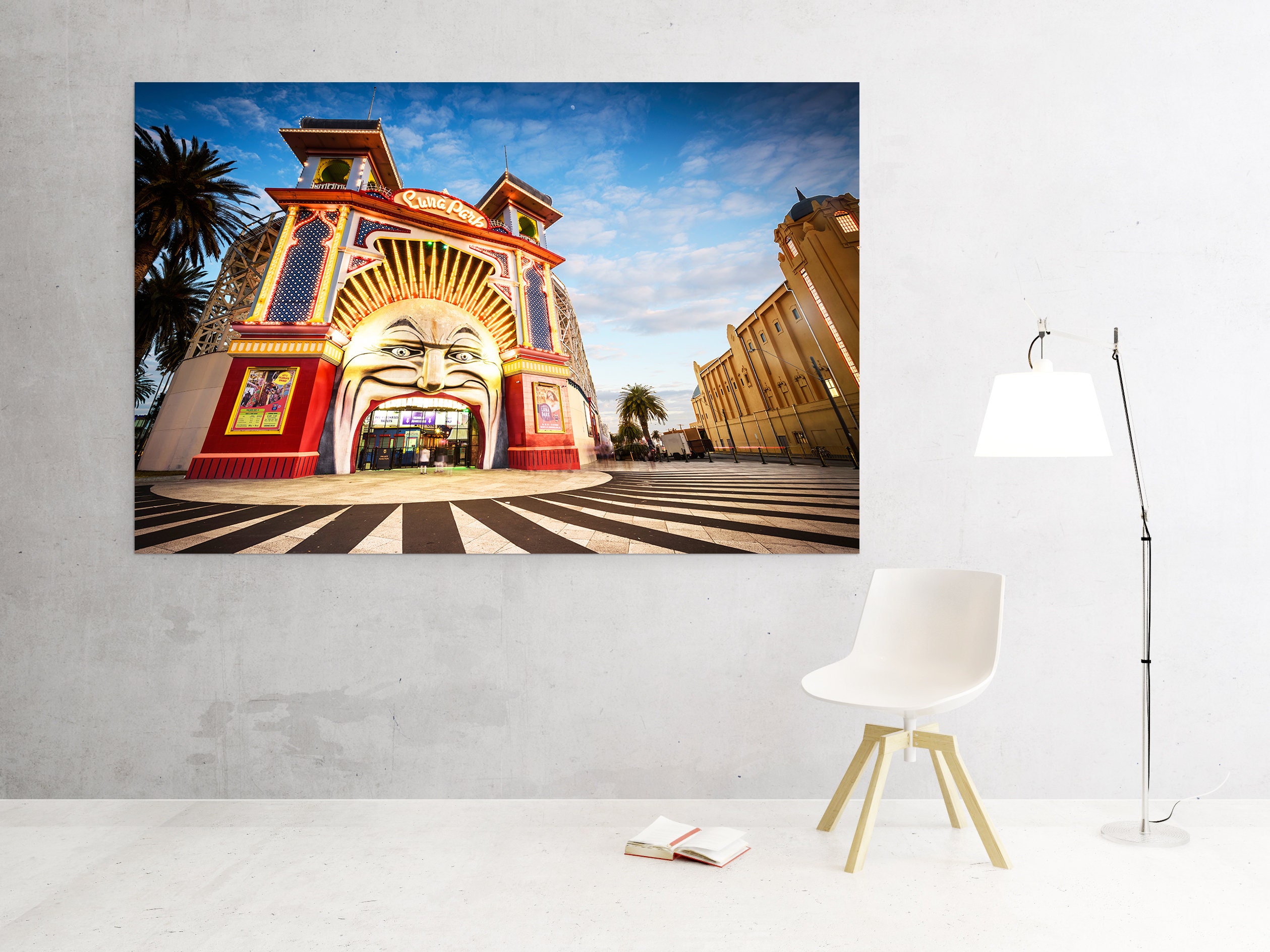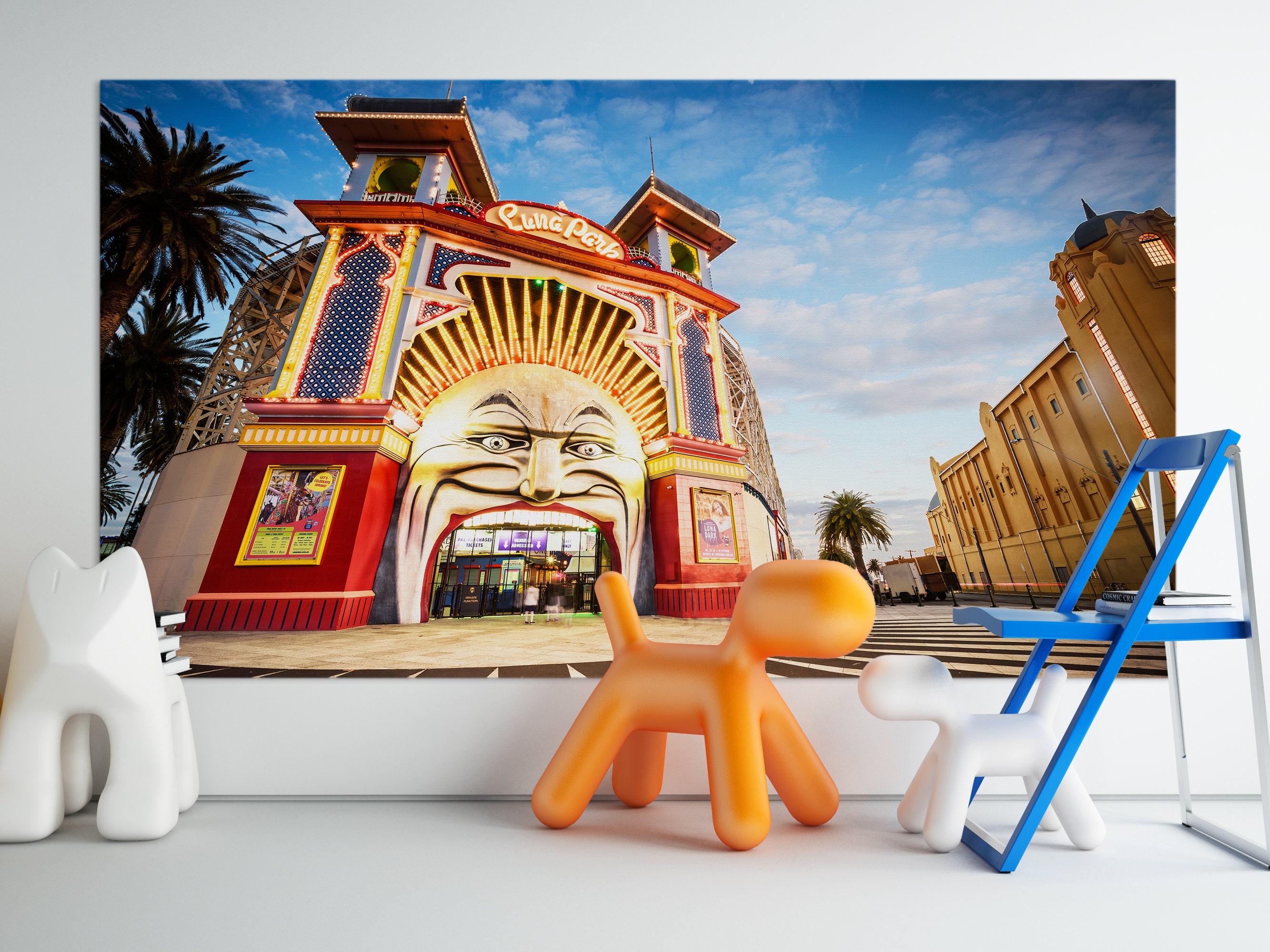 This Melbourne Australia photo was shot in front of Luna Park in St Kilda. It includes the Palais Theatre and the sunset night sky. This photo wall art is ideal for Carnival Print, StKilda Beach Poster, Kids Room Decor, Oversized Art, Travel Gift, Photography Backdrop or a House Warming Gift, even as a blank wall solution!