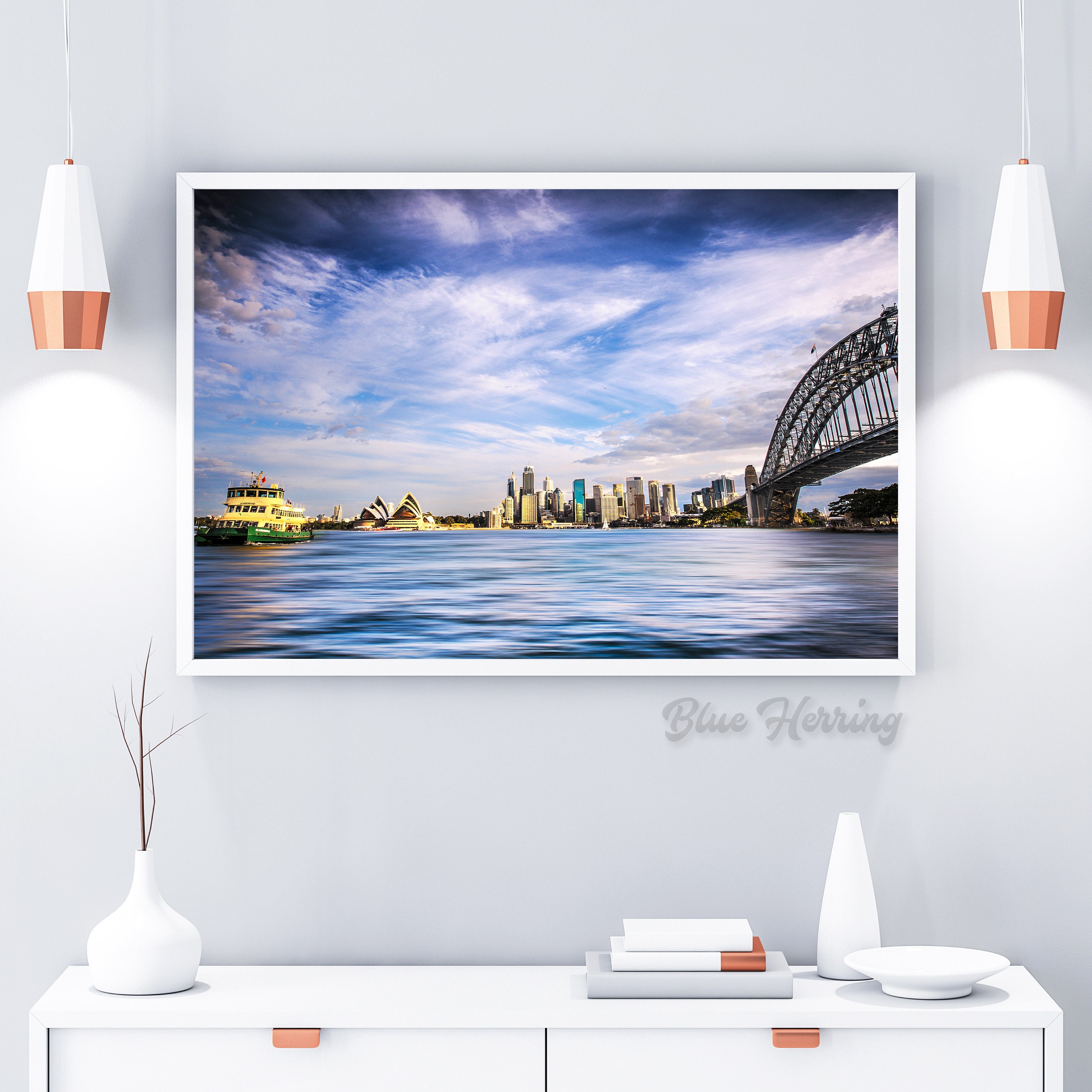 This Sydney Harbour photography shows the Sydney city skyline with the Sydney Opera House and the Sydney Harbour. Perhaps a zoom background and some office wall art? This photo is ideal as an Australia Travel Decor Poster, Christmas Gift, Wedding Birthday Gift a or even a House Warming Gift or even to be printed to canvas.