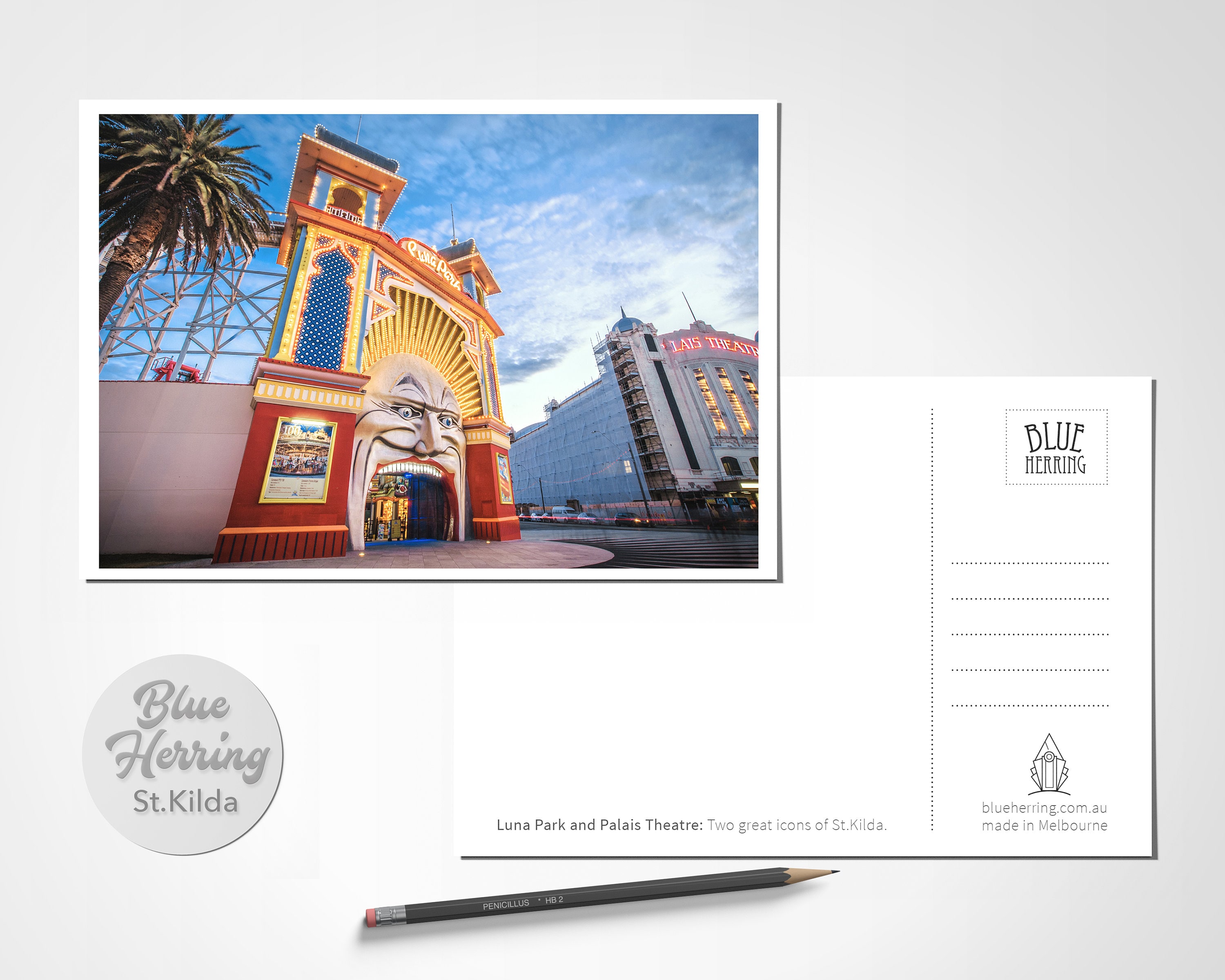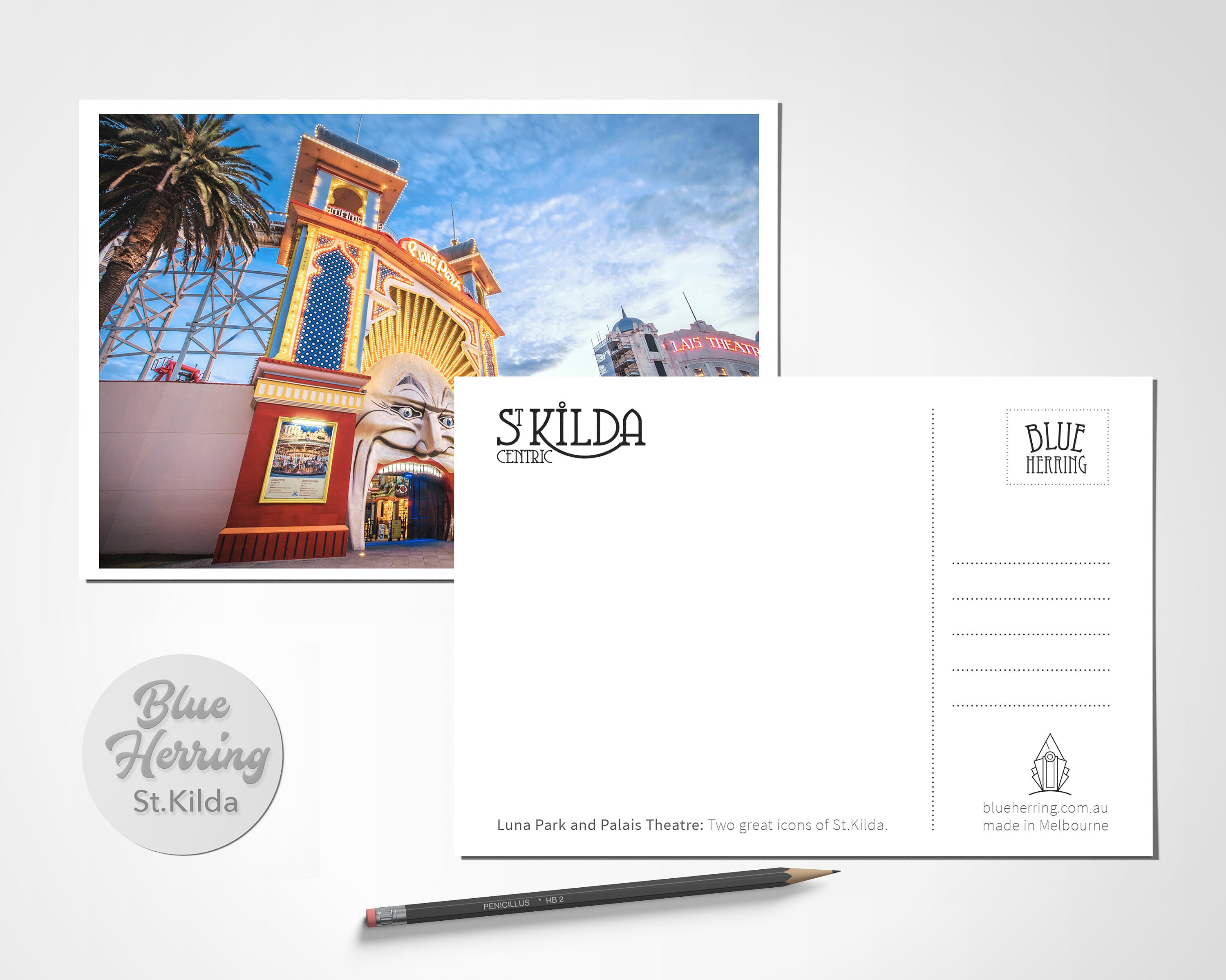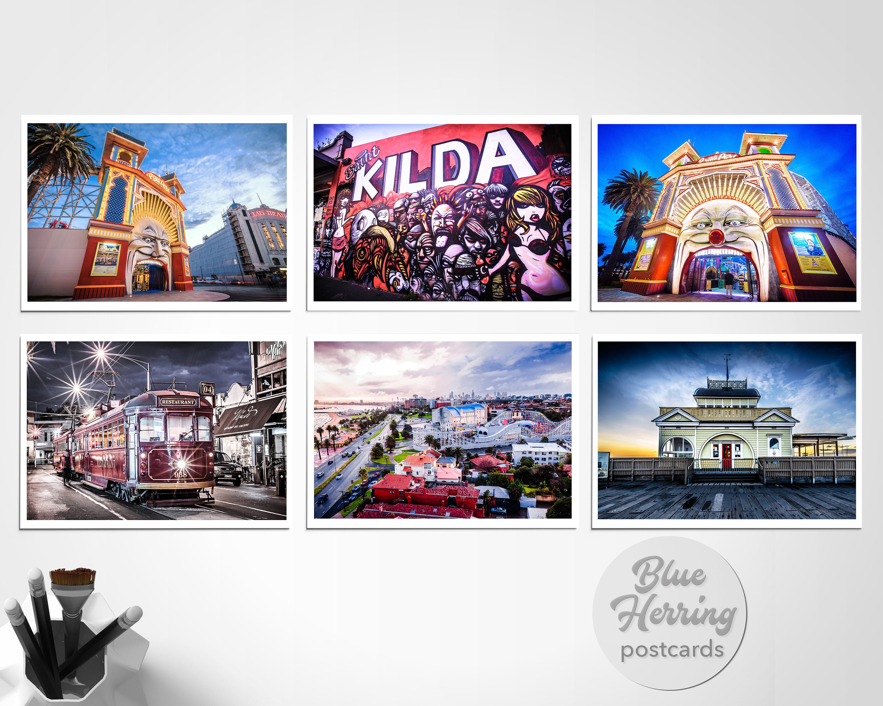 Set of 6 Blue Herring Photographic Art postcards featuring St.Kilda Australia
